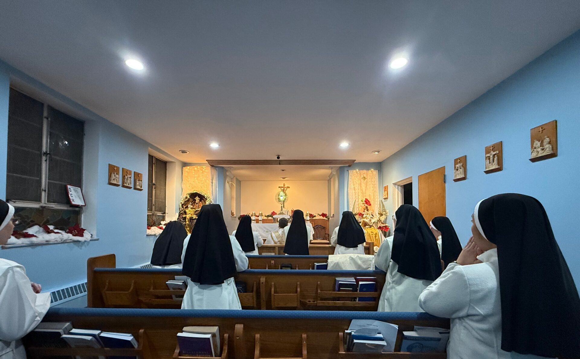 As our first and foremost duty, we are called to live the contemplation of divine things and an assiduous union with God in prayer. We seek to grow in personal and communal communion with Christ and focus our lives on this meeting of liberating love